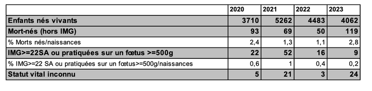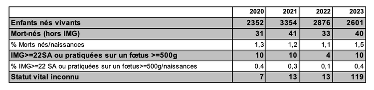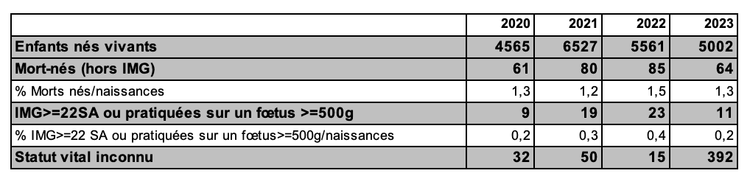 Tableau AMP35. TEC avec ovocytes et spermatozoïdes du couple : issues d'accouchements de 2020 à 2023
