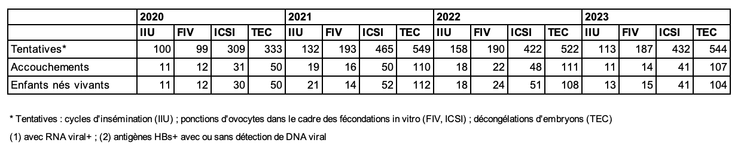 En 2023, 197 enfants sont nés après une AMP réalisée en contexte viral (tous virus confondus VIH, VHB et VHC).