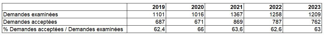 Taux d’acceptation des demandes examinées