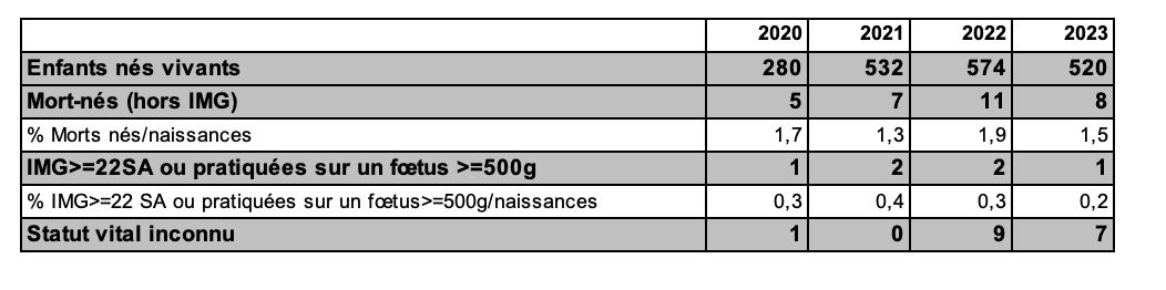 Tableau AMP45. AMP avec don d'ovocytes : issues d'accouchements de 2020 à 2023