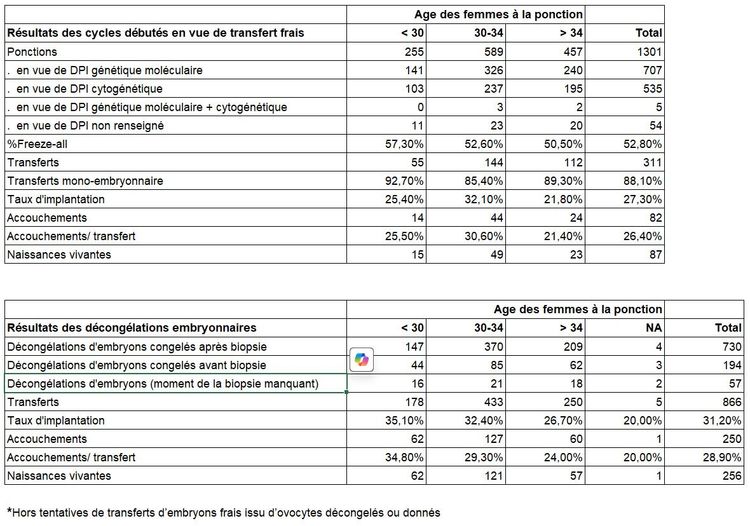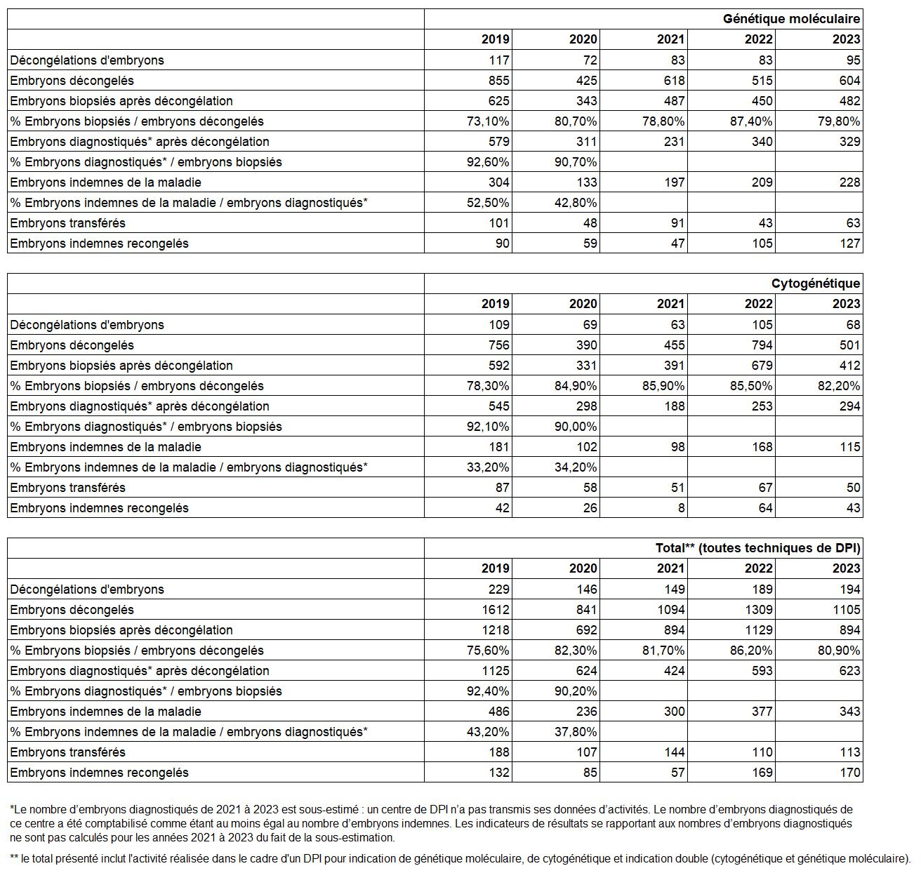 En conséquence, certains indicateurs concernant les embryons congelés avant la biopsie sont donc à interpréter avec prudence.