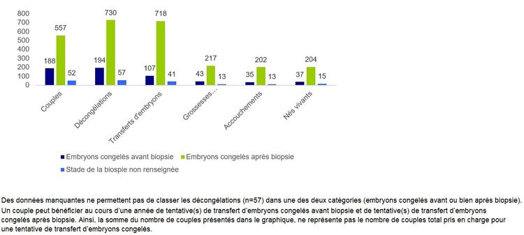 Figure DPI7. Tentatives d'AMP pour DPI avec transfert d'embryons congelés selon le moment de la biopsie en 2023