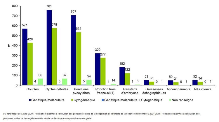 Figure DPI5. Tentatives d’AMP pour DPI avec transfert immédiat d'embryons ou transfert mixte (embryons frais et congelés) par technique en 2023