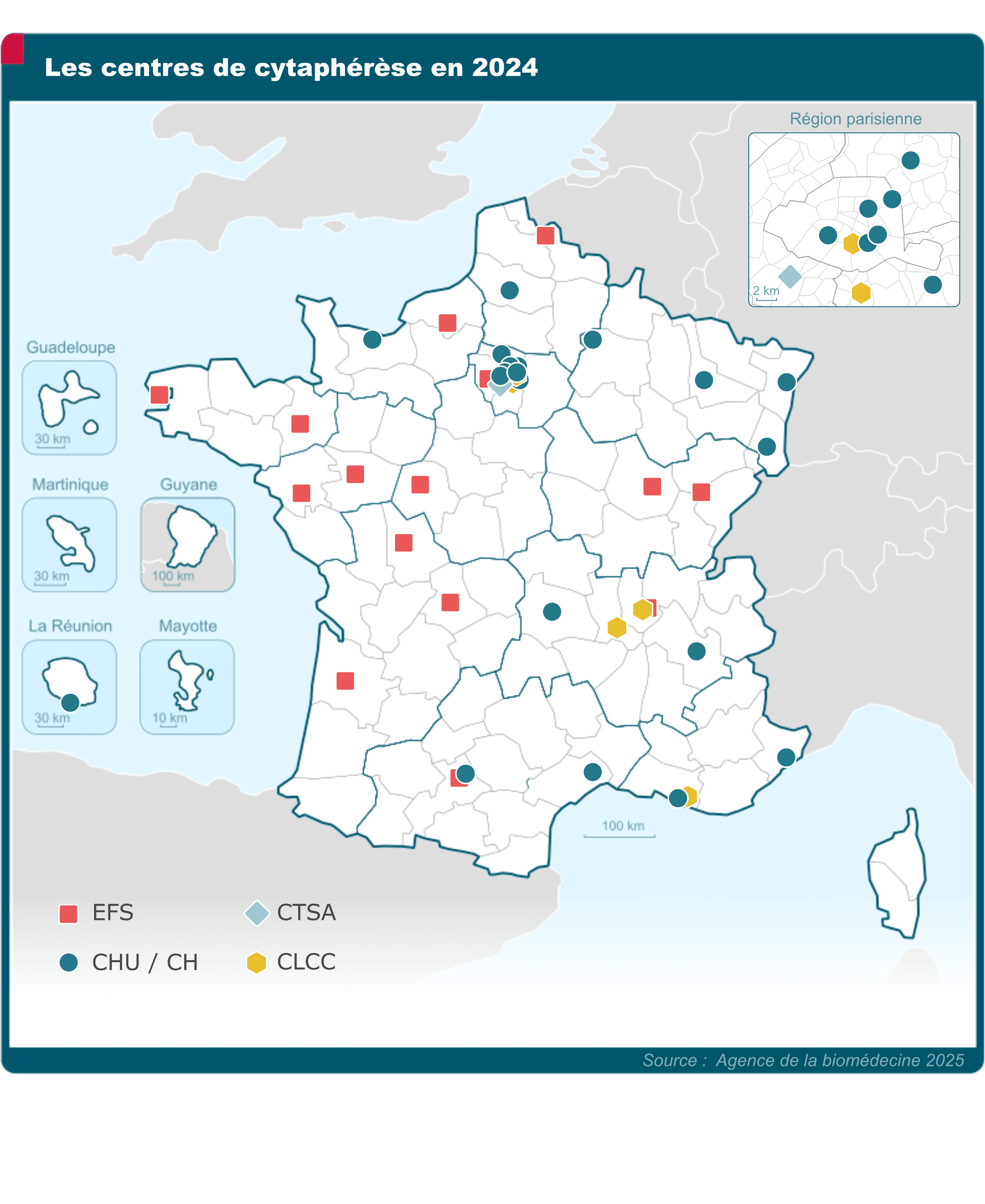 Figure CSH P1. Localisation des centres de prélèvement de CSP et CMN par cytaphérèse en 2024