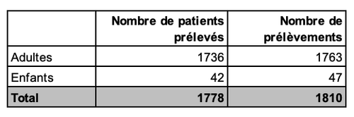 35 centres ont eu une activité de prélèvement autologue et allogénique.