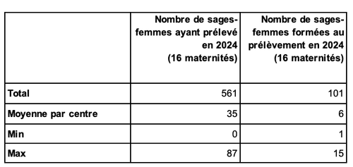Le nombre de prélèvements de sang placentaire non apparentés déclaré par les maternités entre le 1er janvier et le 31 décembre 2024 a été comparé au nombre de prélèvements déclarés par les banques de sang placentaire au Réseau Français de Sang Placentaire pour la même période.