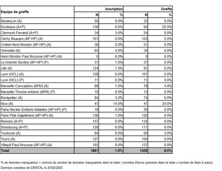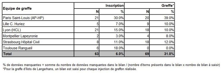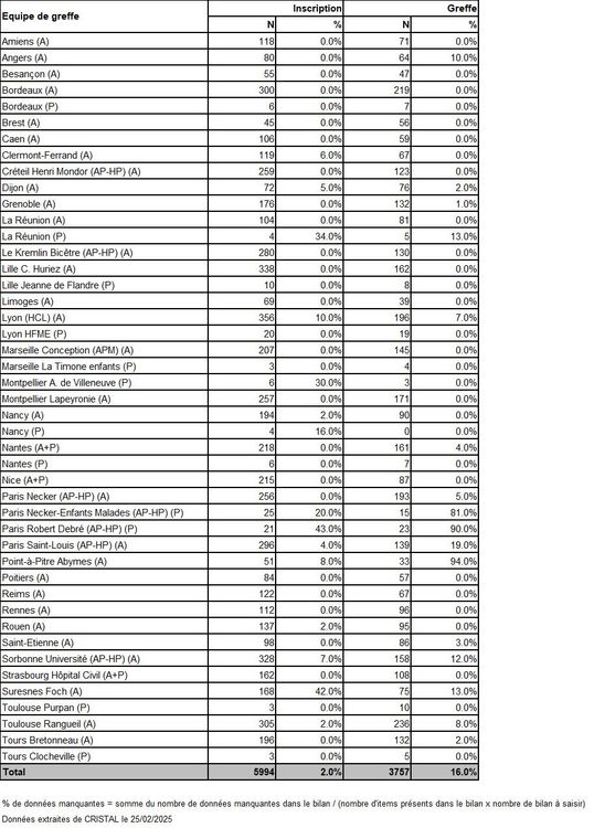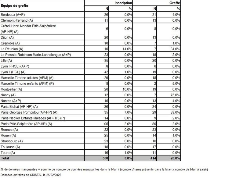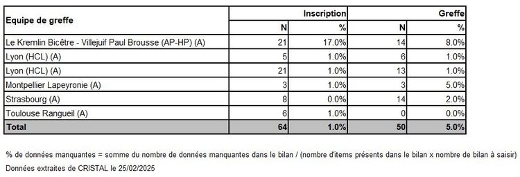Ces informations servent également à l’évaluation des activités d’inscription et de greffe par organe et par équipe.