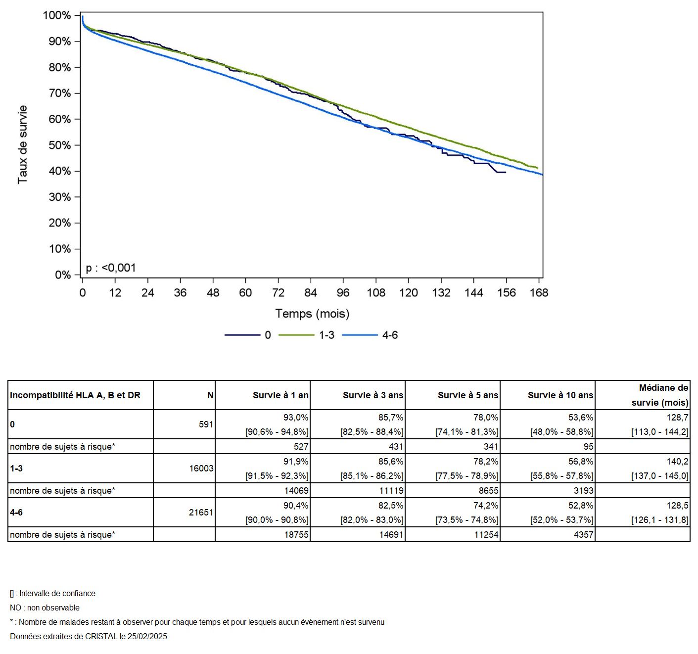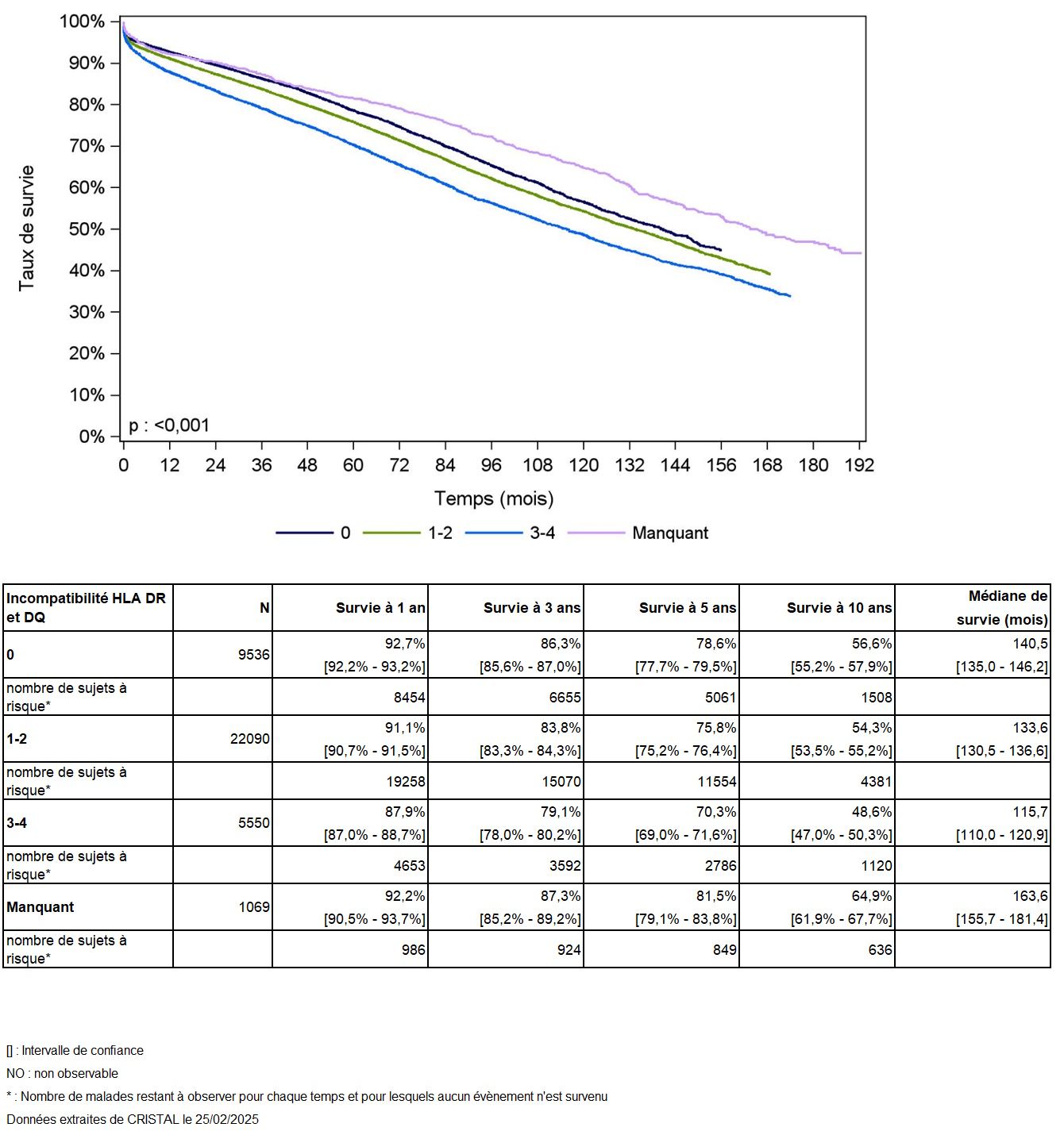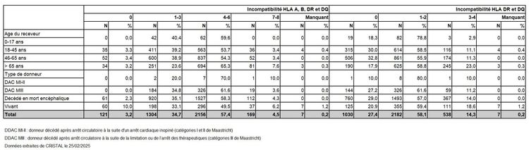 Tableau R38b. Caractéristiques des greffes selon la compatibilité HLA en super-type