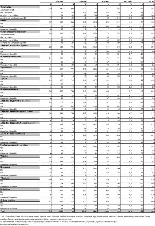 Tableau R6. Comorbidités parmi les nouveaux malades inscrits en greffe rénale selon leur âge à l'inscription (2019-2024)