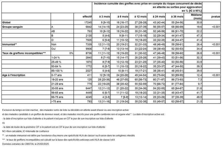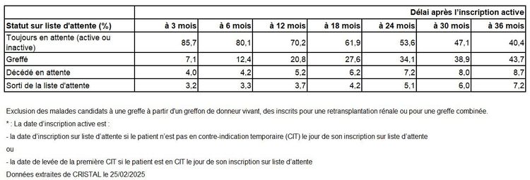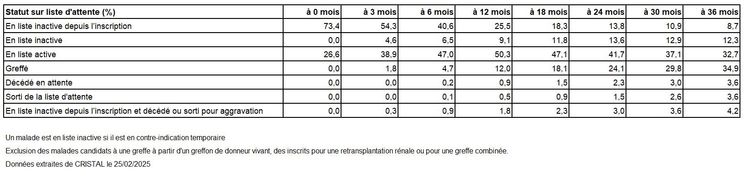 inscrits sur la liste d'attente d'une greffe rénale à partir de la date d'inscription active*