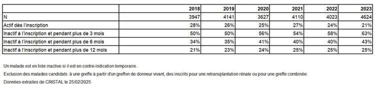 inscrits entre 2020 et 2023 sur la liste d'attente d'une greffe rénale à partir la date de l'inscription active*