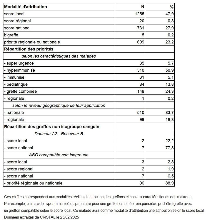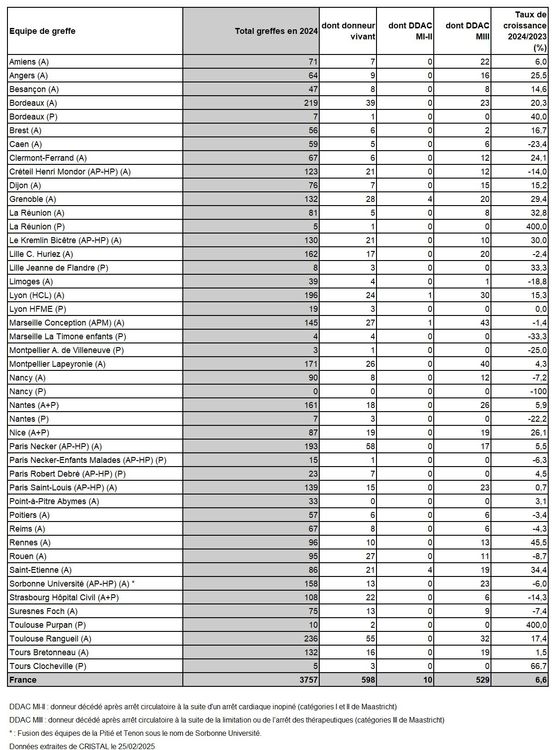 Le nombre estimé de porteurs de greffon fonctionnel en France est de 43 532 au 31 décembre 2024.